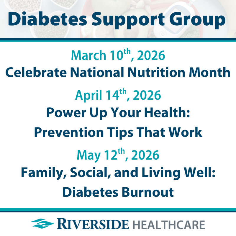 Riverside's Diabetes Wellness team is dedicated to helping you stay on track when it comes to managing your diabetes. Each support group has a unique topic tailored to helping you succeed. You will also find support and encouragement, knowing you won't be walking this journey alone.Diabetes Support Group